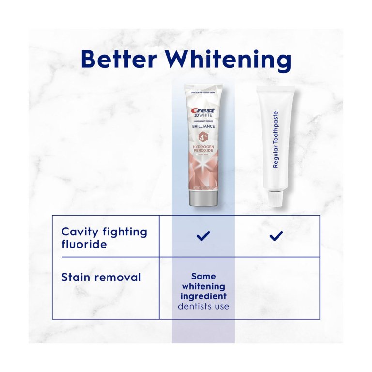 Brighten your smile with Crest 3D White Brilliance Toothpaste with HP, featuring the highest level of HP in a Crest toothpaste (4%). Contains Fluoride to prevent cavities. Experience Advanced Whitening that Removes Stains and Deeply Cleans*.